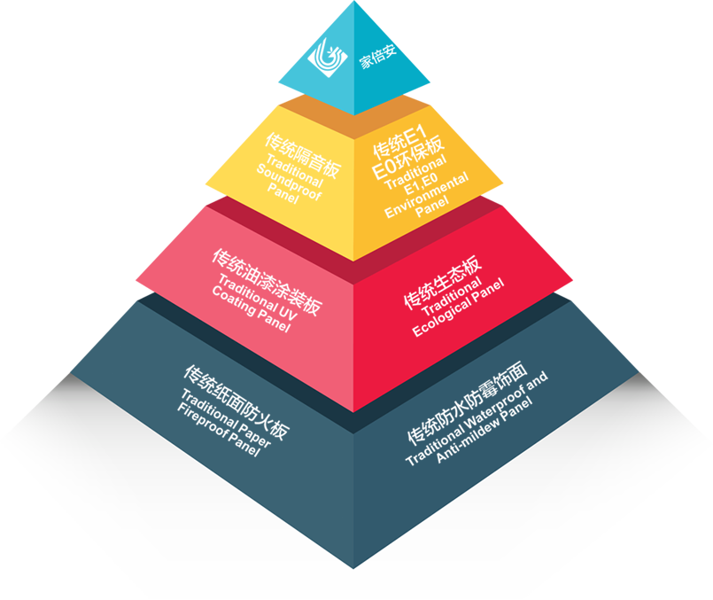 - “家倍安”使用高阻隔金屬鋁箔和高滲、超耐磨納米材料,經(jīng)過(guò)高溫高壓獨(dú)特的工藝方法處理,飾面木質(zhì)纖維結(jié)構(gòu)更加縝密,隔音、降噪,導(dǎo)熱系數(shù)低,防火等級(jí)高,達(dá)到國(guó)家防火材料防火標(biāo)準(zhǔn)A2級(jí)。